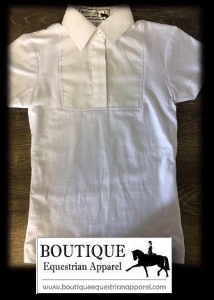 These stunning white shirts allow you to mix and match any colours to complete your outfit! Perfect for the summer the short sleeve TShirt style sits perfectly under your riding jacket ! With a standard collar these shirts are perfect to match your tie and step out into the competition arena!!