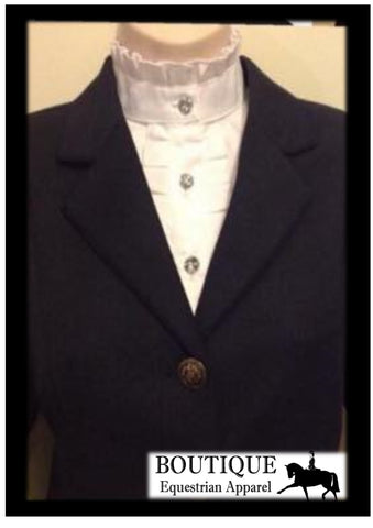 Designed with style and comfort in mind, these beautiful T shirt style Frill Shirts are suitable for every occasion, while being super comfortable and light to wear. From the Dressage Arena to the Show Ring, and everywhere in between these gorgeous shirts look great on their own OR pop them under your jacket at step straight out into a Royal Show arena - they suit it all !!